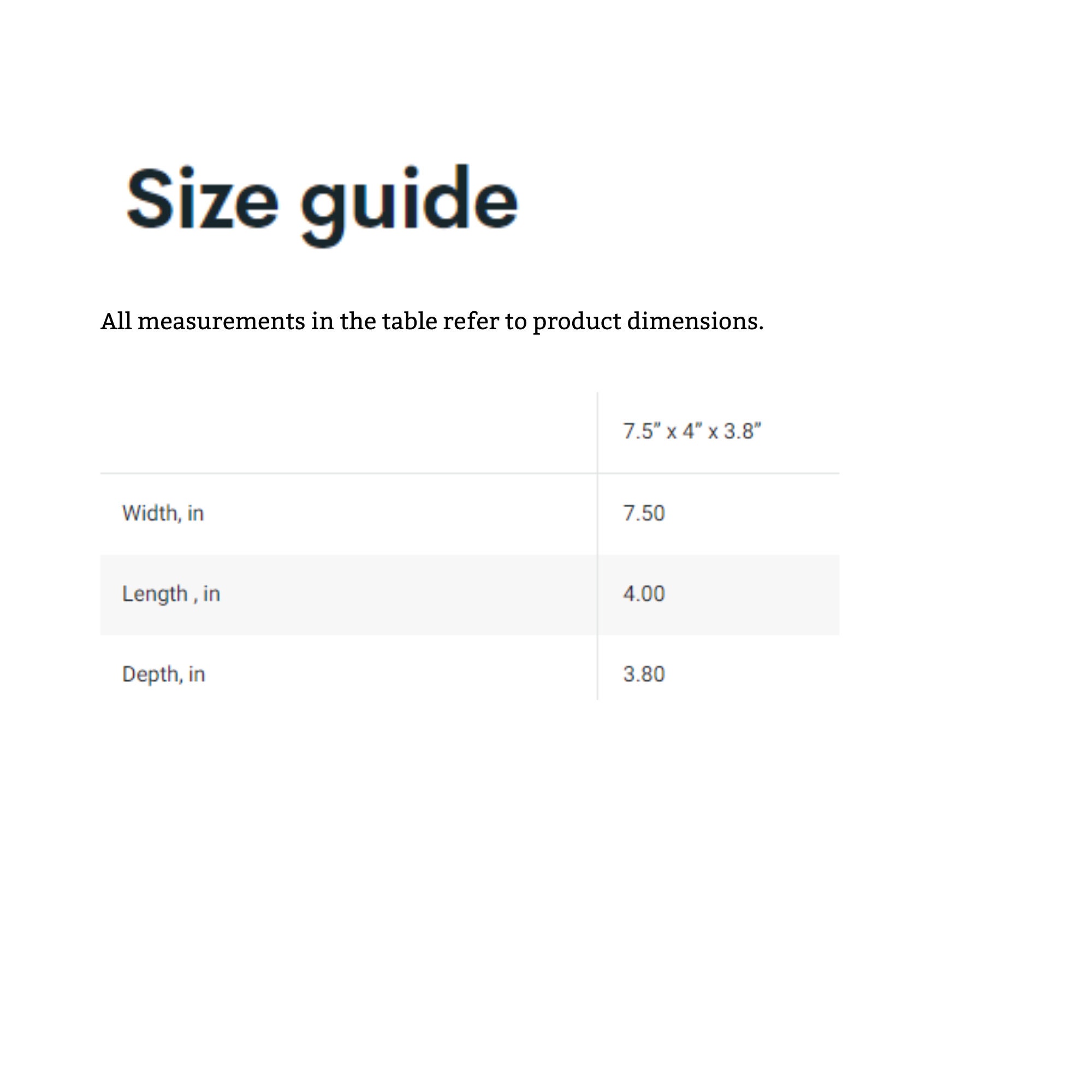 .: One size: 7.5” x 4” x 3.8”