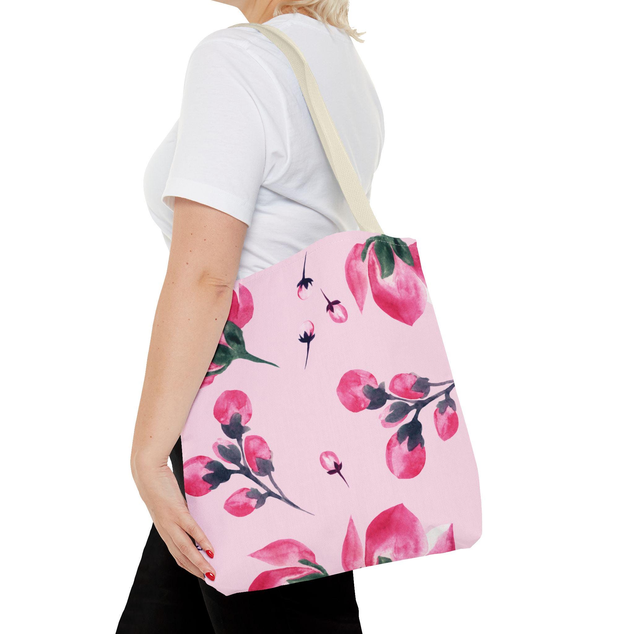 Whether you're heading to brunch, the farmers market, work, or a casual day out, this tote offers the perfect balance of style and function. The spacious interior easily holds your daily essentials, while the lightweight yet durable construction ensures it’s built for everyday use. The fade-resistant print keeps the cherry blossom design vibrant and fresh over time.