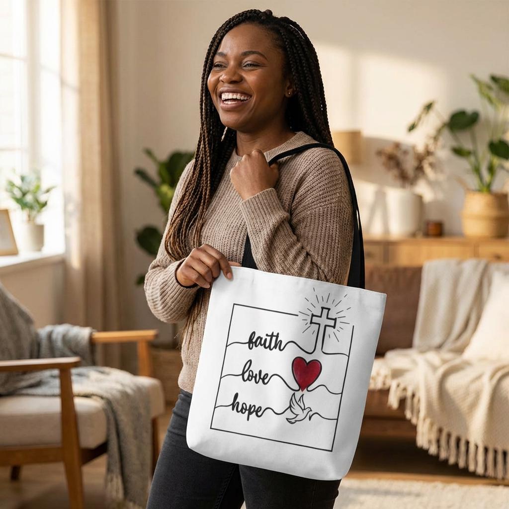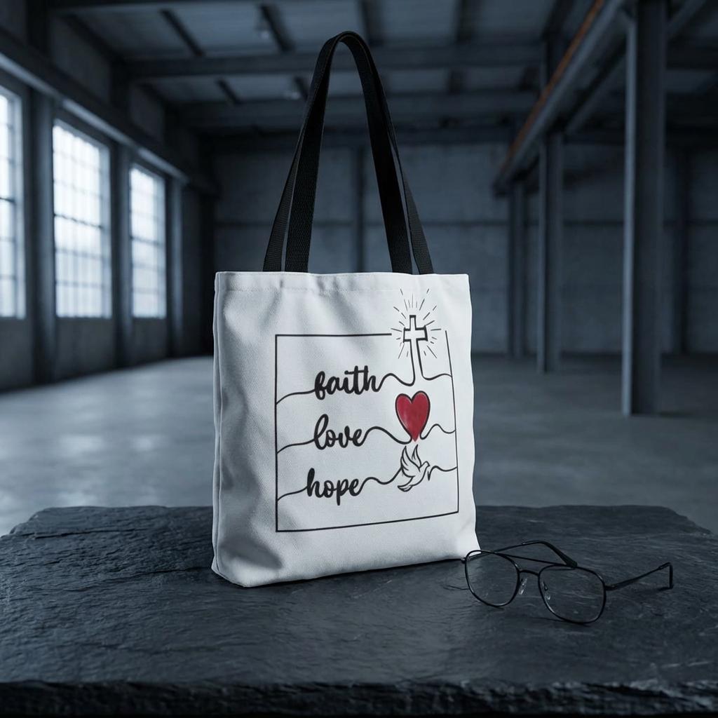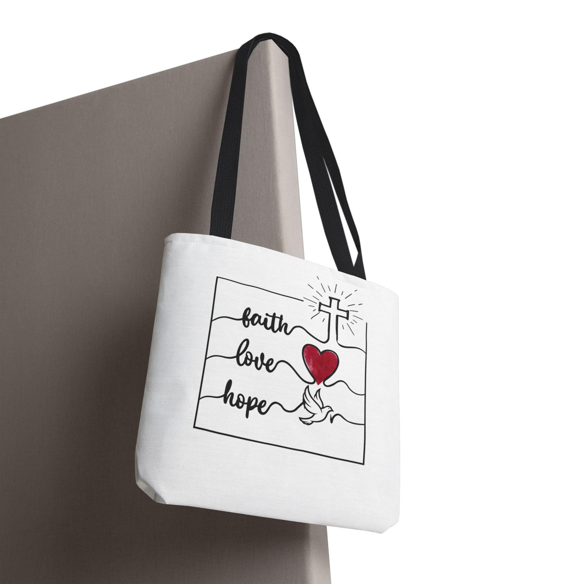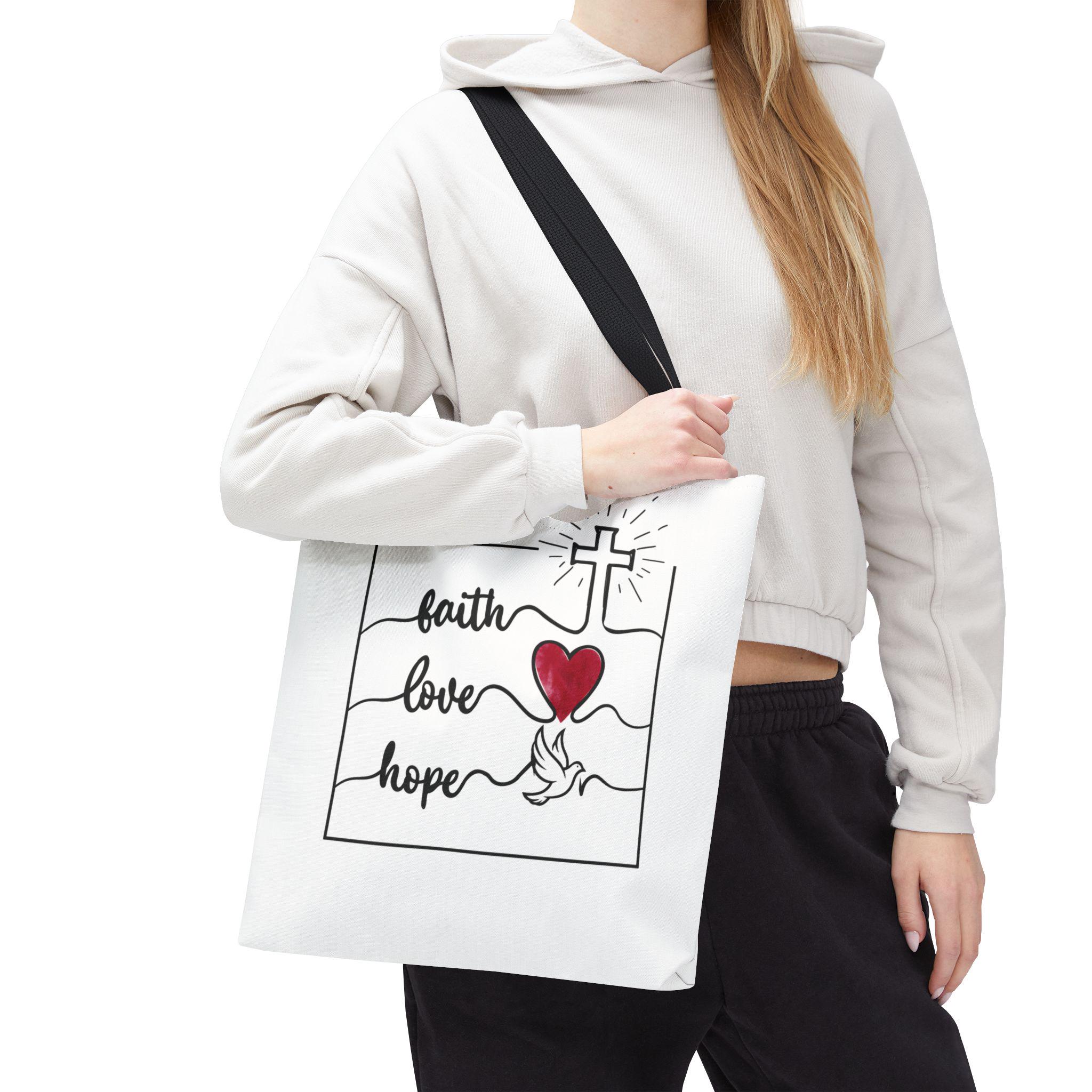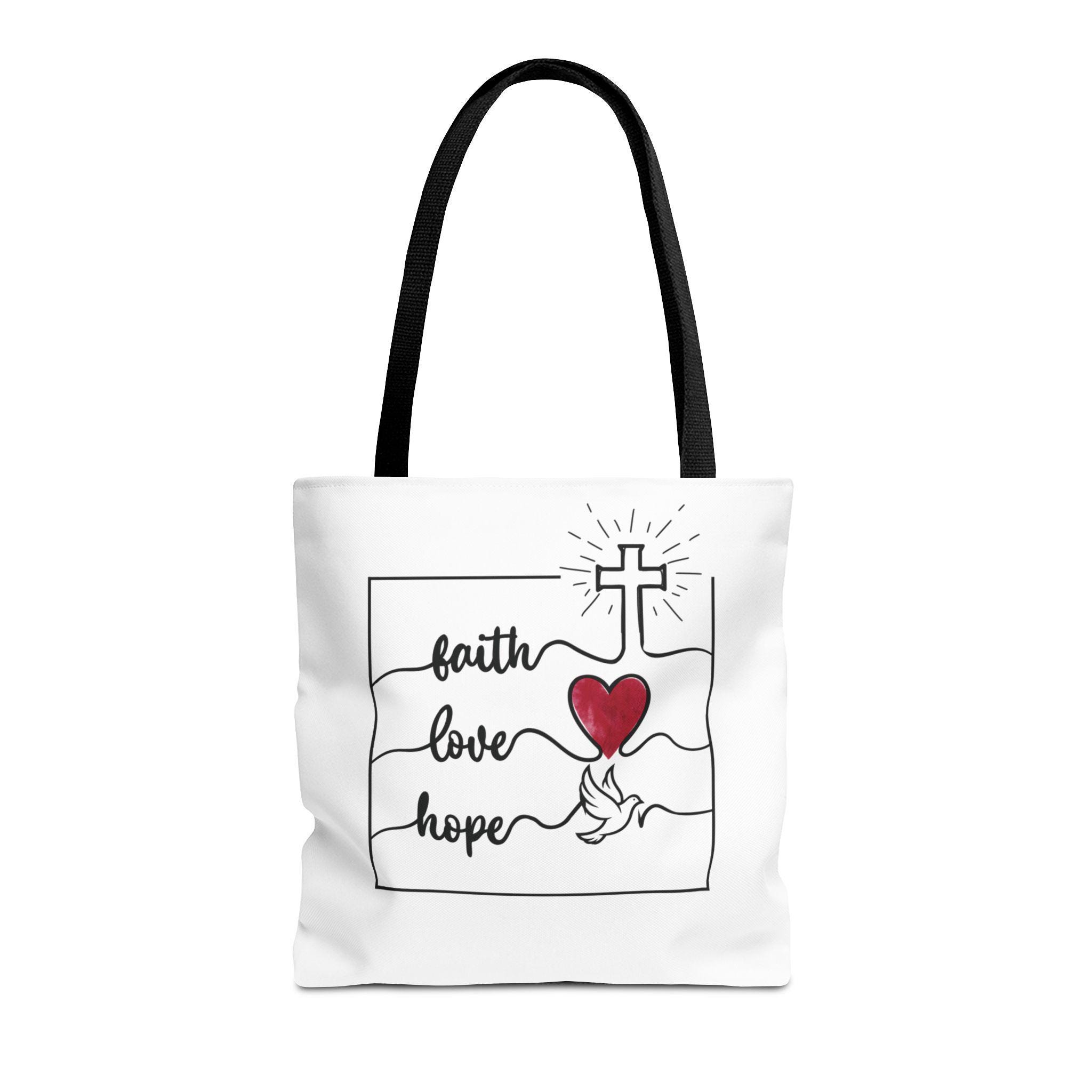 Faith Hope Love Tote Bag – Christian Canvas Tote | Inspirational Gift | Cross & Heart Design Carry-All